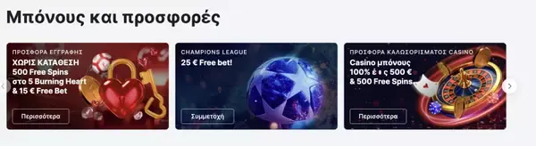 Οι προωθήσεις μας έχουν σχεδιαστεί ώστε να είναι εύκολες στη διεκδίκηση και εύκολες στην κατανόηση πριν ξεκινήσετε. Στην Ελλάδα, μπορείτε να επιλέξετε ανάμεσα σε μια προσφορά με έμφαση στο sportsbook και ένα πακέτο καλωσορίσματος με έμφαση στο καζίνο, και στη συνέχεια να συνεχίσετε με επιστροφή χρημάτων και events δικτύου. Το κλειδί είναι να ελέγξετε την ελάχιστη κατάθεση, τον κανόνα τζίρου (αν αναφέρεται) και τυχόν όρια που επηρεάζουν το πώς χρησιμοποιείτε τις δωρεάν περιστροφές.