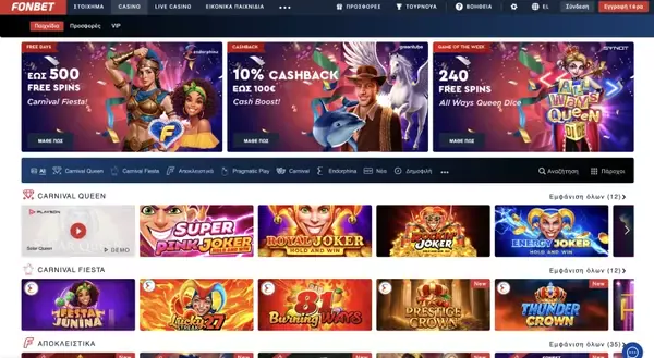 Περιλαμβάνουμε επίσης επιλογές με τζακπότ και υψηλή μεταβλητότητα, με καθαρές ενδείξεις στο lobby όπου είναι δυνατό. Τα προοδευτικά τζακπότ, όταν προσφέρονται από τον πάροχο, ακολουθούν τους τυπικούς κανόνες: τα πονταρίσματα πρέπει να πληρούν την απαίτηση του παιχνιδιού και οι νίκες πληρώνονται σύμφωνα με τον εμφανιζόμενο μετρητή τζακπότ και τον πίνακα πληρωμών. Αν ο βασικός στόχος σας είναι η ποικιλία, τα φρουτάκια καζίνο Fonbet θα σας φανούν ευρύτατα, επειδή συνδυάζουμε πολλούς μεγάλους παρόχους και κρατάμε διαθέσιμες τόσο νέες κυκλοφορίες όσο και σταθερές «κλασικές» επιλογές.